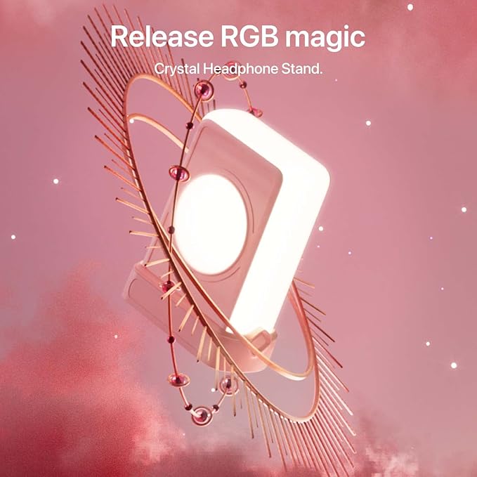 YOWU RGB Headphone Stand with Charger - 4 in 1 Docking Station & 10 Magical Light Modes - Cool Gaming Accessories (Pink)
