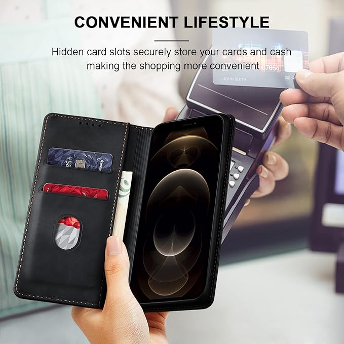 Jasonyu Flip Wallet Case for iPhone 12 Pro Max,Leather Magnetic Folio Cover with Card Holder,Kickstand - TPU Shockproof Durable Protective Phone Case,Black