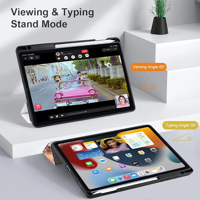 - 【Convenient Function】Sensitive Auto Wake/Sleep, More energy saving. Slim Lightweight Tri-fold Stand with viewing and typing angle. ∠65 ° video mode can act as a screen stand; ∠30 ° input mode acts as a keyboard stand.Solid construction but no bulky, Precise cutouts easily access to all buttons.