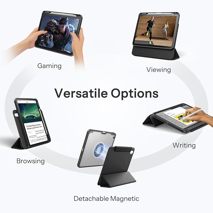 - Detachable Magnetic Case: Effortlessly adjust your tri-fold iPad 11 inch-A16 case to stable stand angles for hands-free reading, viewing, or typing. The clear back case can also be removed entirely for ergonomic cooking or gaming