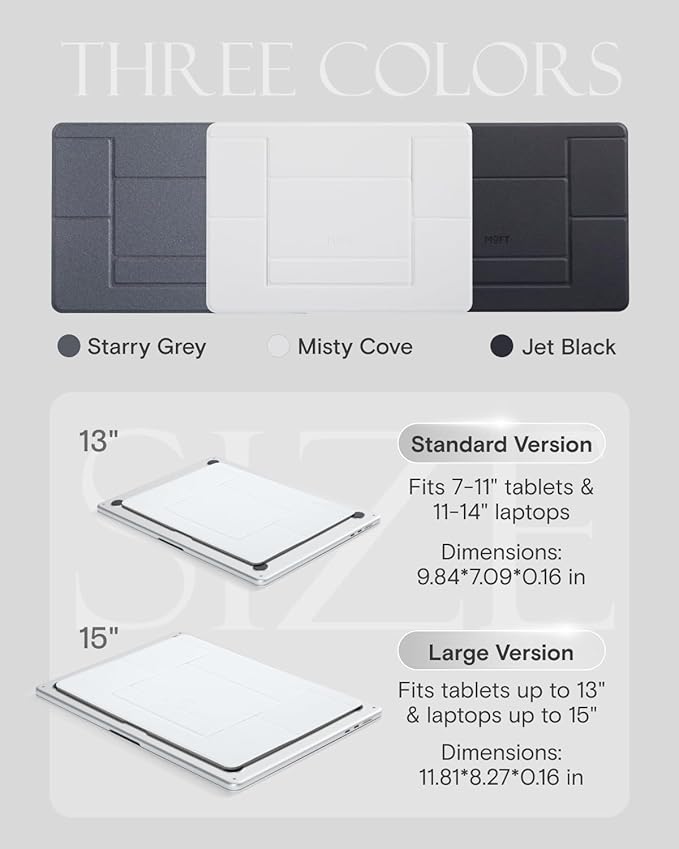 - [Wide Compatibility]The MOFT Universal Laptop Stand fits 7-11" tablets and 11-14"laptops, with ventilation holes to keep a laptop cool.