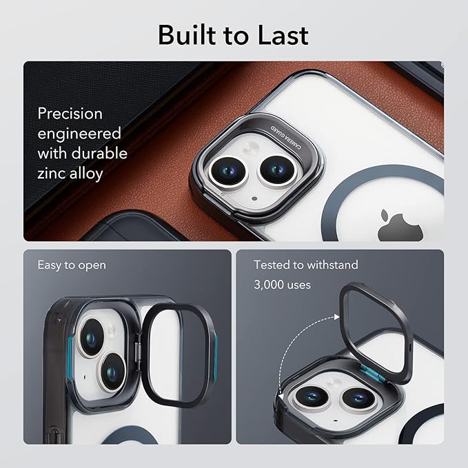 - Adjustable Stash Stand: positioned around camera frame to stay hidden when folded away while keeping MagSafe ring 100% unobstructed; enjoy a freely adjustable and stable view for watching shows whenever, wherever