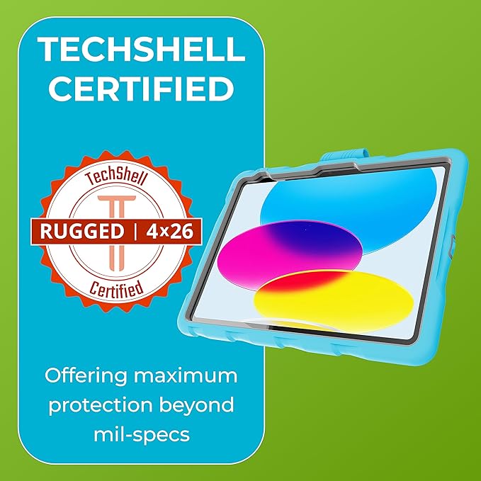 - ALL AROUND PRIME PROTECTION - Our cases provide always-on standard protection with TechShell certified durability, guaranteeing drop protection up to four (4) feet. Ensuring your tablet is safe with our RUBBERIZED BUMPERS CORNERS and our signature TREAD DESIGN surround the 4 EDGES of your iPad for maximum shock absorption with a screen overlay and port covers to protect against liquid, dust, and dirt.