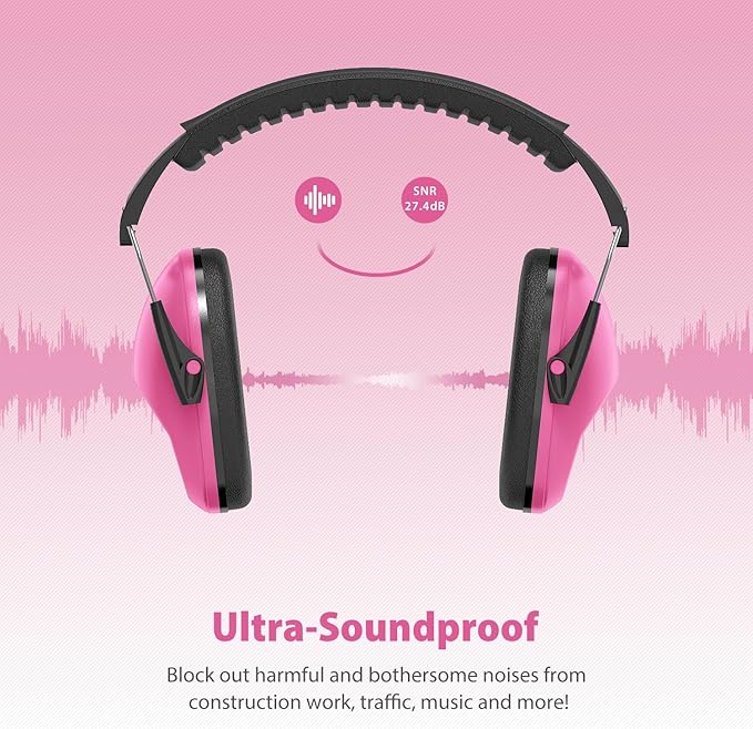 - 【Mighty Noise Reduction】: Armed with rugged ABS shell and thickened noise reduction sponge, these earmuffs provide an SNR of 27.4 dB, effectively reduce noise and shelter kids' hearing from damage.