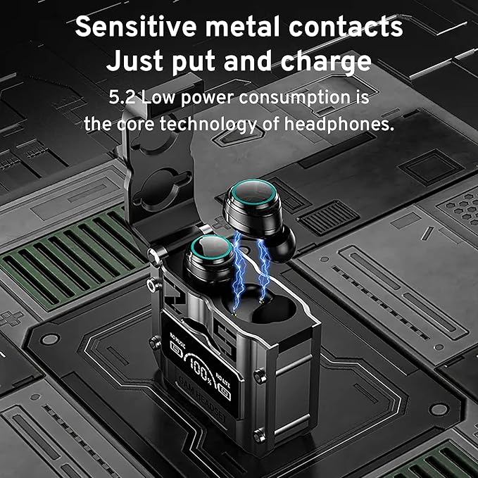 - [Sensitive metal contacts just put and charge & Magnetic hatch cover Toggle to open] The hatch cover has a built-in sensitive magnet, No need to force it open, It can be opened and closed with just a slight toggle. Sensitive metal contacts just put and charge 5.3 Low power consumption is the core technology for headphones, It adopts the design of a mini energy-gathering cabin, which can be charged immediately after discharge.