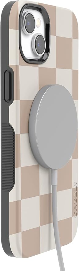 Casely iPhone 14 Case | Fit Check | Neutral Checkerboard Checkered | Compatible with MagSafe | Bold Protective Design