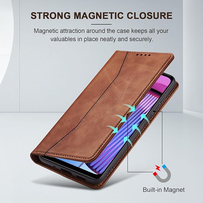 Jasonyu Flip Wallet Case for Moto G Power (2023),Leather Magnetic Folio Cover with Card Holder,Kickstand - TPU Shockproof Durable Protective Phone Case,Brown