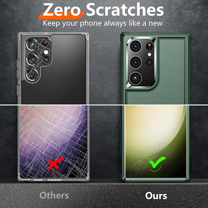 - [Military Grade Protection] Certified by SGS (MIL-STD-810H), this Samsung Galaxy S23 Ultra Case has survived over 3,000 12FT drop tests. Additionally, this S23 Ultra phone case features multiple cushioning structures and 4-corner Upgraded airbags, dispersing the 99% of impact force, layer by layer. It provides optimum drop protection, effectively protects your phone from drops, scratches. A raised bezel around the camera and screen provide reliable protection for the vital parts of the phone