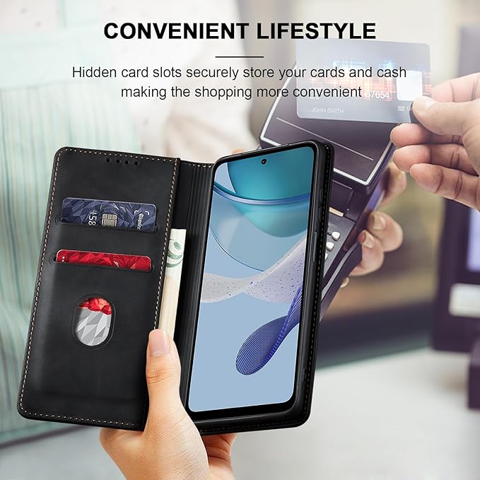 Jasonyu Flip Wallet Case for Moto G 5G (2023),Leather Magnetic Folio Cover with Card Holder,Kickstand - TPU Shockproof Durable Protective Phone Case,Black