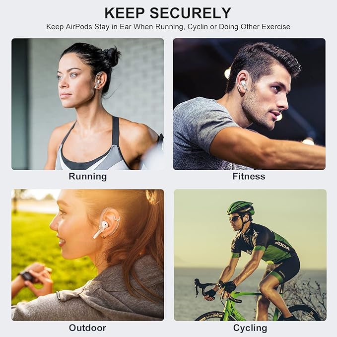 - KEEP SECURELY: Upgraded ear hooks will buckle the ear inward, it will keep your AirPods stay in your ears securely and prevents it from falling out when you are running, jogging, cycling or doing other exercises [No problems even with glasses]