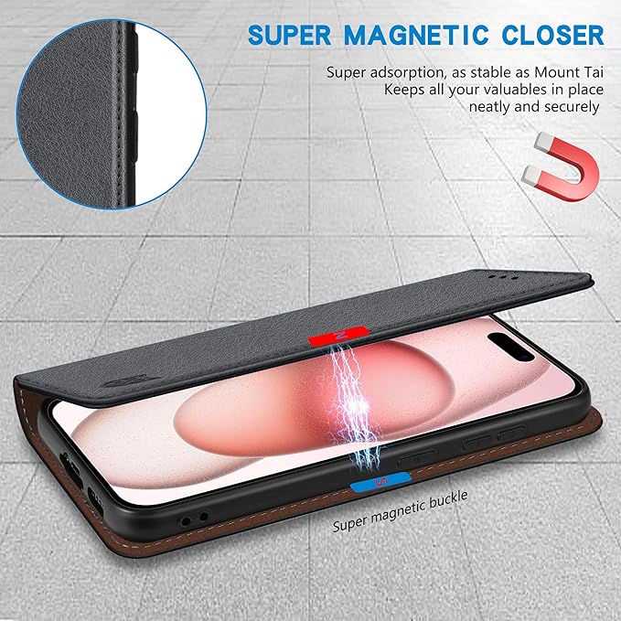 - 360° Protection:Protect your mobile phone in all aspects,Precise cutouts allow full access to all features(Cameras,Speaker,Built in magnetic seal,to ensure your mobile phone and ID card cash is stored in the wallet safely.