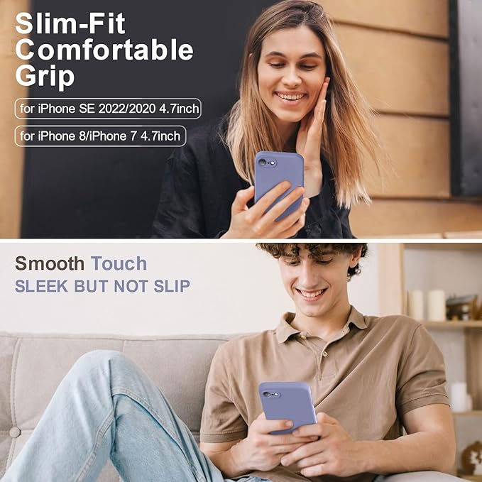 Vooii for iPhone SE Case 2022/3rd/2020,iPhone 8/7 Case, Upgraded Liquid Silicone with [Flat Edges] [Camera Protection] [Soft Anti-Scratch Microfiber Lining] Phone Case for iPhone SE - Lavender Grey