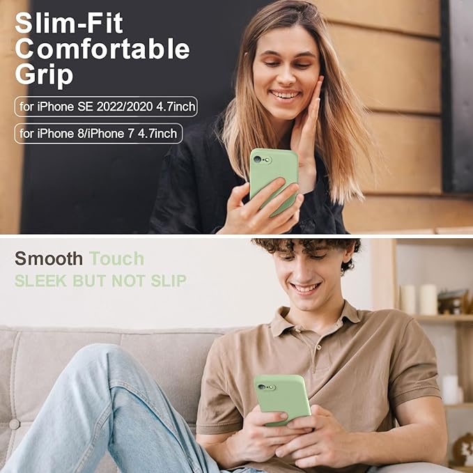 Vooii for iPhone SE Case 2022/3rd/2020,iPhone 8/7 Case, Upgraded Liquid Silicone with [Flat Edges] [Camera Protection] [Soft Anti-Scratch Microfiber Lining] Phone Case for iPhone SE - Matcha