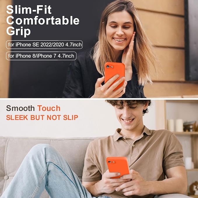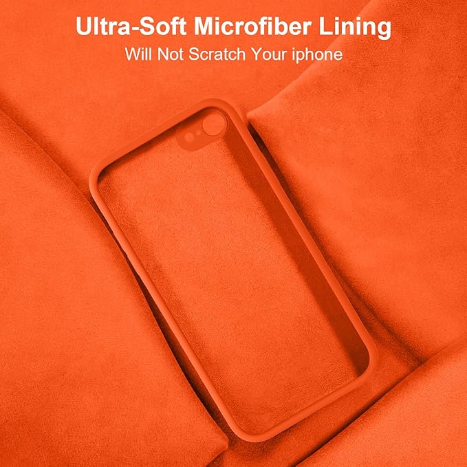 Vooii for iPhone SE Case 2022/3rd/2020,iPhone 8/7 Case, Upgraded Liquid Silicone with [Flat Edges] [Camera Protection] [Soft Anti-Scratch Microfiber Lining] Phone Case for iPhone SE - Neon Orange