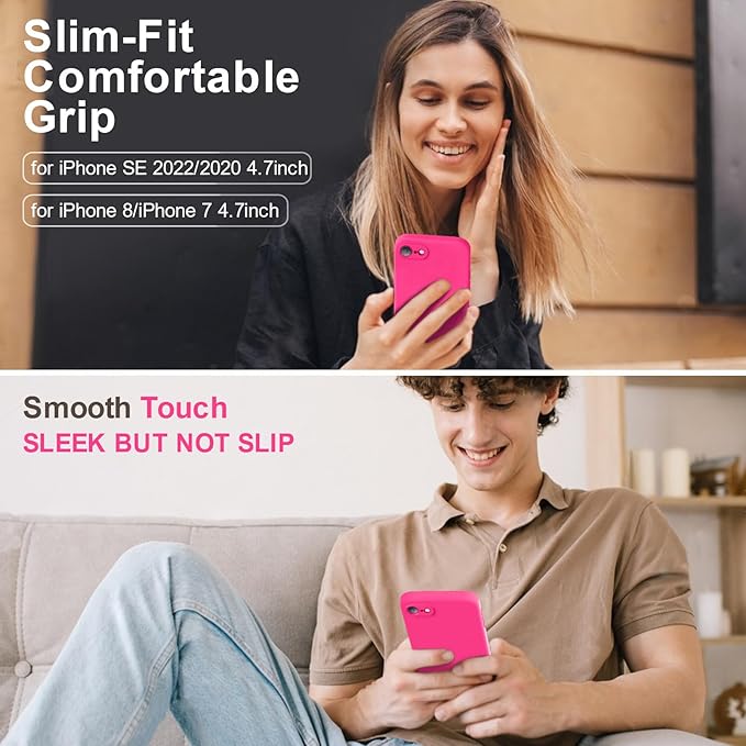 Vooii for iPhone SE Case 2022/3rd/2020,iPhone 8/7 Case, Upgraded Liquid Silicone with [Flat Edges] [Camera Protection] [Soft Anti-Scratch Microfiber Lining] Phone Case for iPhone SE - Hot Pink