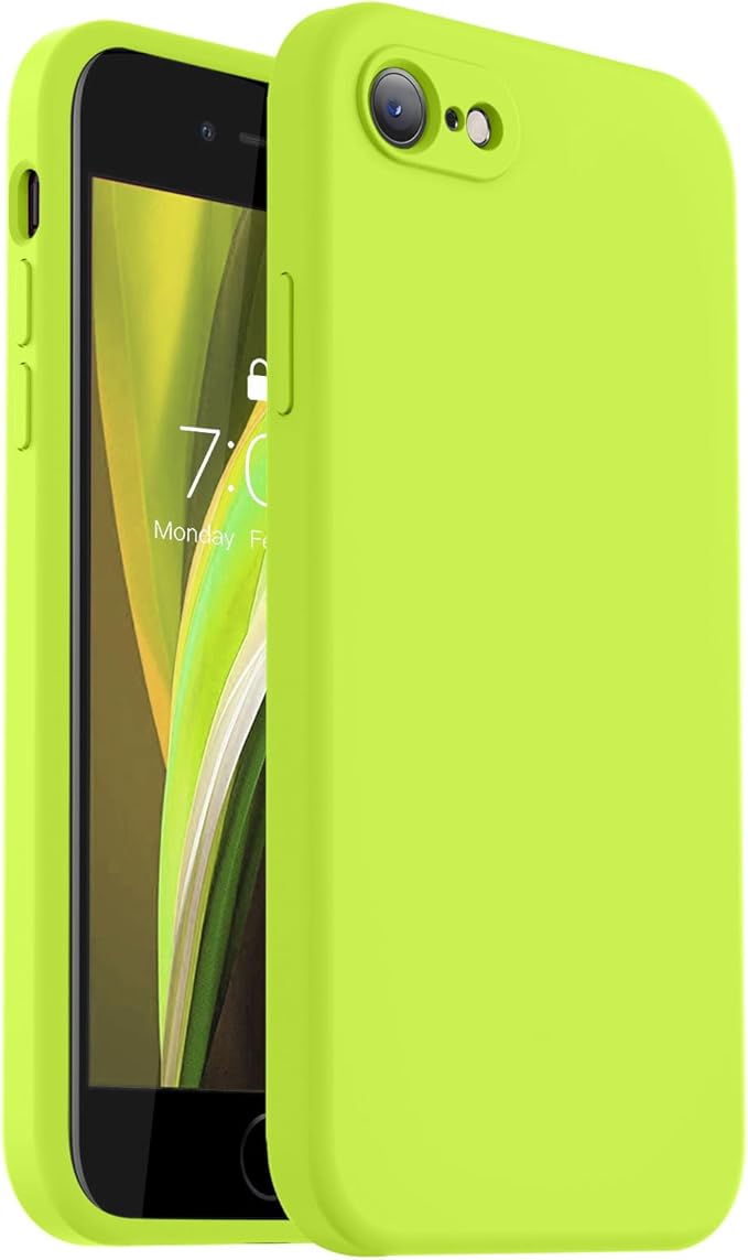Vooii for iPhone SE Case 2022/3rd/2020,iPhone 8/7 Case, Upgraded Liquid Silicone with [Flat Edges] [Camera Protection] [Soft Anti-Scratch Microfiber Lining] Phone Case for SE 4.7 - Fluorescent Green