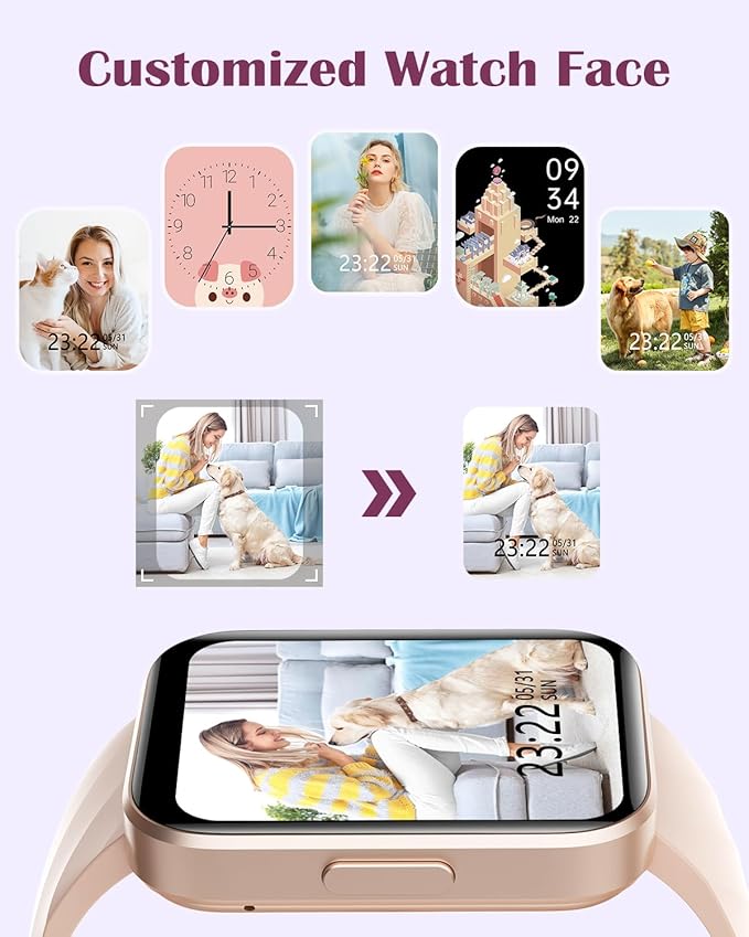 - 【Wide Compatibility & Personalized Watch Faces】D1 smart watch works as an extension of your phone so you can do more while on the go, bringing more convenience to your life. It works seamlessly with iPhone and Android phones. This smart watch can offer over 100 personalized watch faces to choose from, and you can also customize your watch face with your favorite photos to highlight your unique personality.