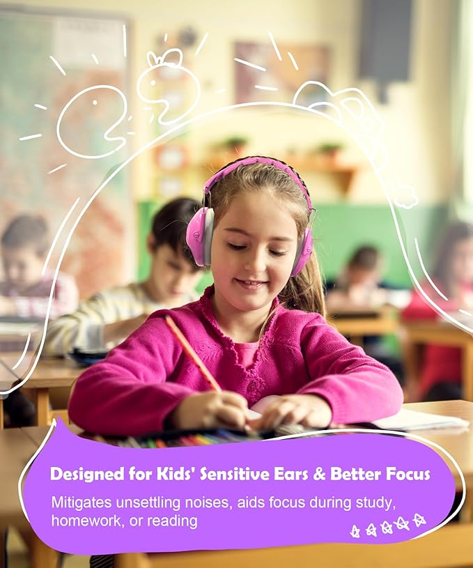 - DESIGNED FOR SENSITIVE EARS & ENHANCED FOCUS: With an impressive 25dB NRR, our kids' noise-canceling earmuffs effectively reduce noise levels. They are particularly suitable for children with autism or sensitive hearing, creating a peaceful environment that aids concentration during activities like school, homework, or reading