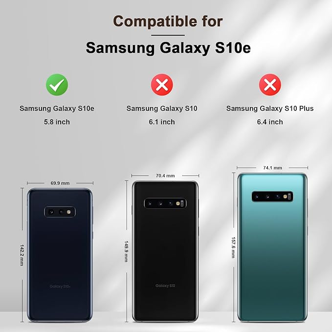 - 【Compatibility】:Designed for Samsung Galaxy S10e.The Leather wallet case precise cutouts for easy access to all ports, buttons, sensors and cameras. Soft buttons with good response, are easy to press.Please check your phone model that is correct before placing an order.