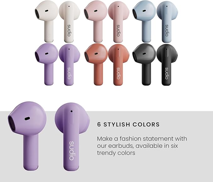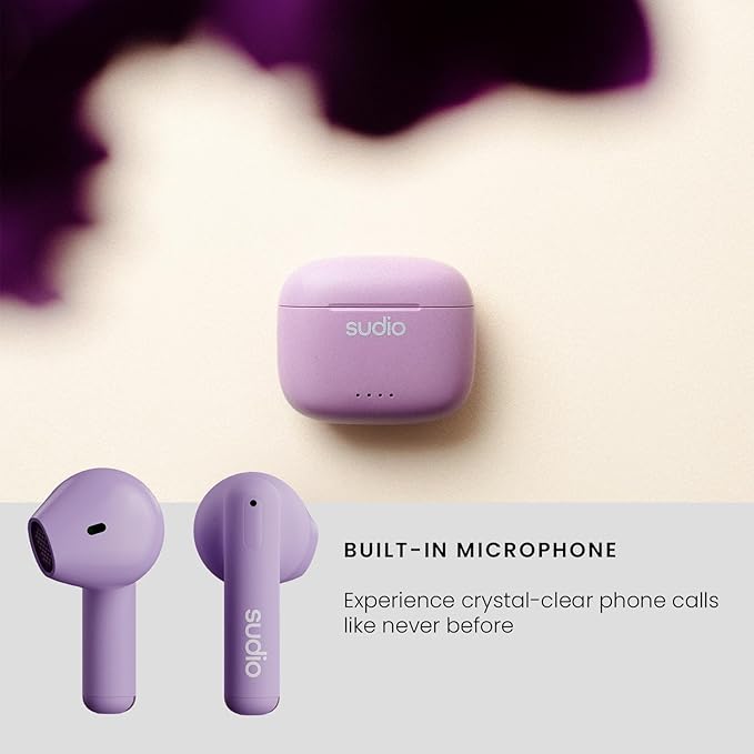 Sudio A1 True Wireless Earbuds, Bluetooth Earbuds 5.3, Noise Cancelling Earbuds, Waterproof Earbuds, Touch Control, Wireless Earphones with Charging Case, Perfect for Premium Sound Quality (Purple)