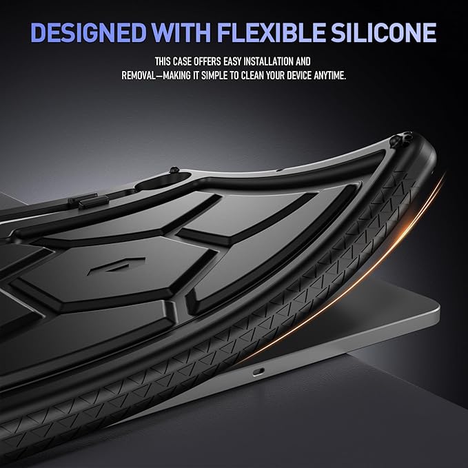 - CHILDPROOF - Made with kid-friendly, non-toxic silicone. Includes tactile side grip and unique rear turtle shell design with raised supports for better grip and drop protection.