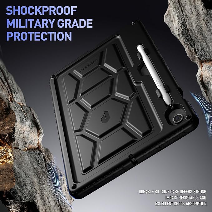 Poetic TurtleSkin Case for Samsung Galaxy Tab S10 Lite/Tab S10 FE/Tab S9 FE | Fan Edition 10.9 inch Case with S Pen Holder, Heavy Duty Shockproof Kids Friendly Protective Silicone Cover, Black