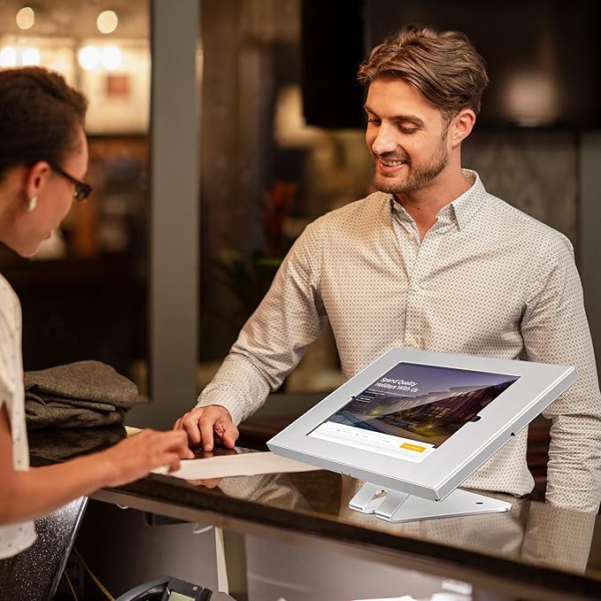 - Elevate Your Business Setting: From boutique hotels to bustling diners, our iPad security stand seamlessly integrates with its surroundings, elevating the aesthetic while providing unmatched device protection.