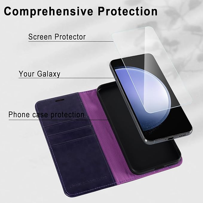 - Precise Craft and Perfect Design: Our handmade phone case is crafted with premium leather, covers 360°bezels protection of your samsung galaxy S23 FE 5G and includes raised sides to prevent screen scratches and any other daily wear. Ultra-strong magnetic closure provides security and peaceful mind