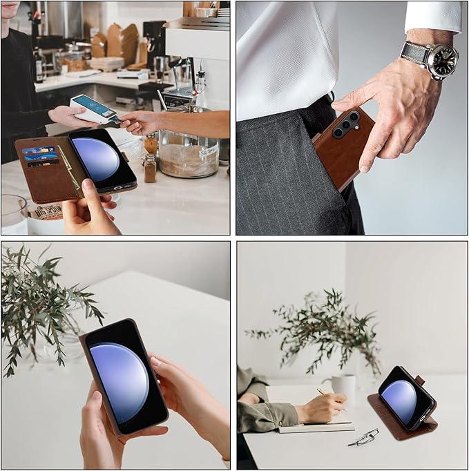 - Precise Craft and Perfect Design: Our handmade phone case is crafted with premium leather, covers 360°bezels protection of your samsung galaxy S23 FE 5G and includes raised sides to prevent screen scratches and any other daily wear. Ultra-strong magnetic closure provides security and peaceful mind
