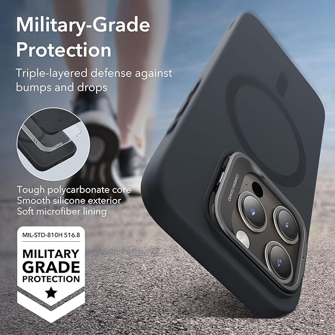 ESR for iPhone 15 Pro Case, MagSafe Silicone Case with Stand, Military-Grade Protection, Built-in Camera Stash Stand, Magnetic Phone Case for iPhone 15 Pro, Cloud Series,Black