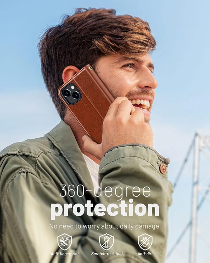 - Superior Protection: This case for iPhone 15 is made from premium PU soft durable leather with a special TPU inner case to prevent scratches and fingerprints. It maintains the strength of the fibers, and its natural surface texture provides a soothing, luxurious tactile feel. What’s more, the TPU case with raised edge and extra cushioning offers an all-around shockproof design. It not only looks great, it’s built to protect your iPhone from scratches and drops.