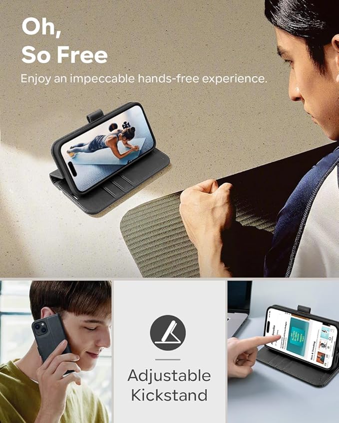 - Multi-function: 1) Featuring 3 card slots and a wallet compartment with a magnetic closure, the case can secure 3 cards and some banknotes while closing perfectly. 2) Flip the leather case to create a sturdy kickstand to read, view, or make Facetime calls at the best angles for a comfortable and satisfying visual experience. 3) Equipped with RFID shielding technology to protect your card information against data theft by RFID scanners while you travel or shop.