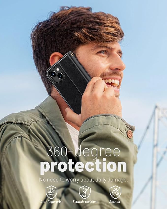 - Superior Protection: This case for iPhone 15 is made from premium PU soft durable leather with a special TPU inner case to prevent scratches and fingerprints. It maintains the strength of the fibers, and its natural surface texture provides a soothing, luxurious tactile feel. What’s more, the TPU case with raised edge and extra cushioning offers an all-around shockproof design. It not only looks great, it’s built to protect your iPhone from scratches and drops.