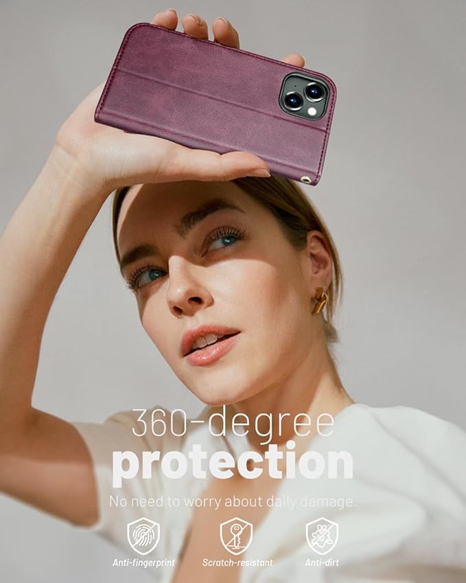 - Superior Protection: This case for iPhone 15 is made from premium PU soft durable leather with a special TPU inner case to prevent scratches and fingerprints. It maintains the strength of the fibers, and its natural surface texture provides a soothing, luxurious tactile feel. What’s more, the TPU case with raised edge and extra cushioning offers an all-around shockproof design. It not only looks great, it’s built to protect your iPhone from scratches and drops.