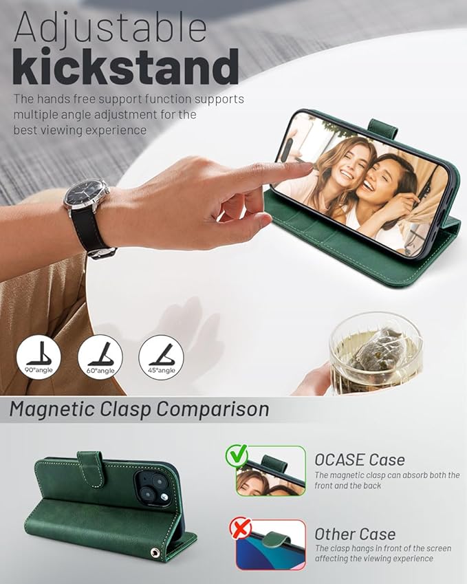 - Compatibility: This wallet phone case is ONLY designed for iPhone 15 (6.1-inch display, 2023 new released). It will NOT compatible with other phone models.Please confirm the phone model in your phone (Settings – General – About – Model Name) before purchasing. If you need another model of wallet case, please click the link [Visit the OCASE Store] below the title.
