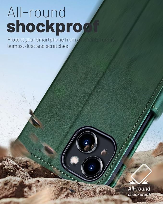 - Superior Protection: This case for iPhone 15 is made from premium PU soft durable leather with a special TPU inner case to prevent scratches and fingerprints. It maintains the strength of the fibers, and its natural surface texture provides a soothing, luxurious tactile feel. What’s more, the TPU case with raised edge and extra cushioning offers an all-around shockproof design. It not only looks great, it’s built to protect your iPhone from scratches and drops.
