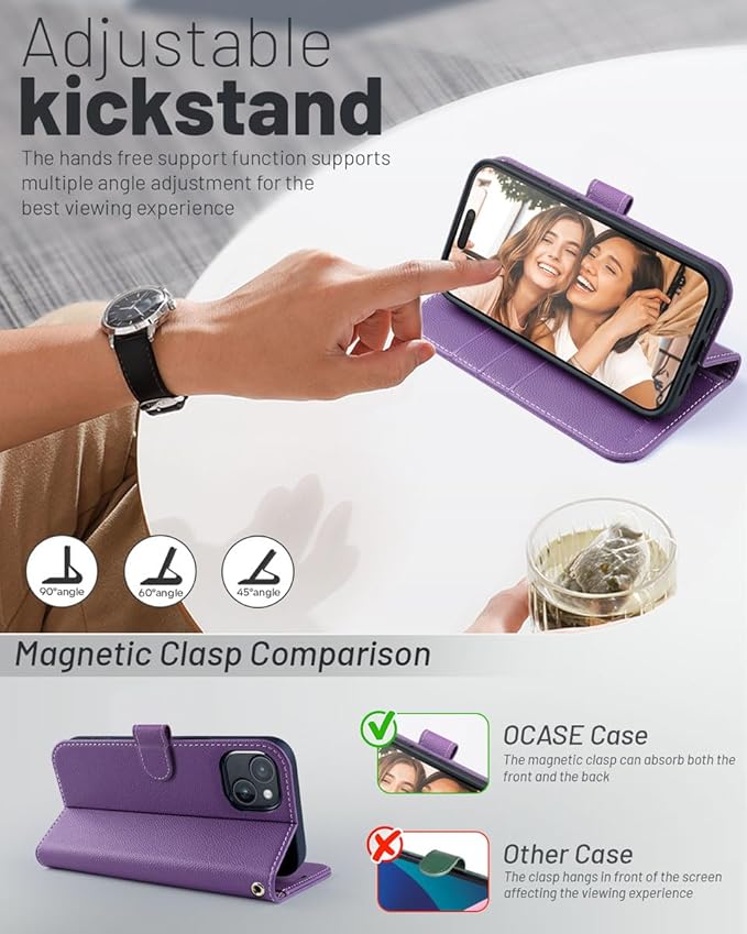 - Compatibility: This wallet phone case is ONLY designed for iPhone 15 (6.1-inch display, 2023 new released). It will NOT compatible with other phone models.Please confirm the phone model in your phone (Settings – General – About – Model Name) before purchasing. If you need another model of wallet case, please click the link [Visit the OCASE Store] below the title.