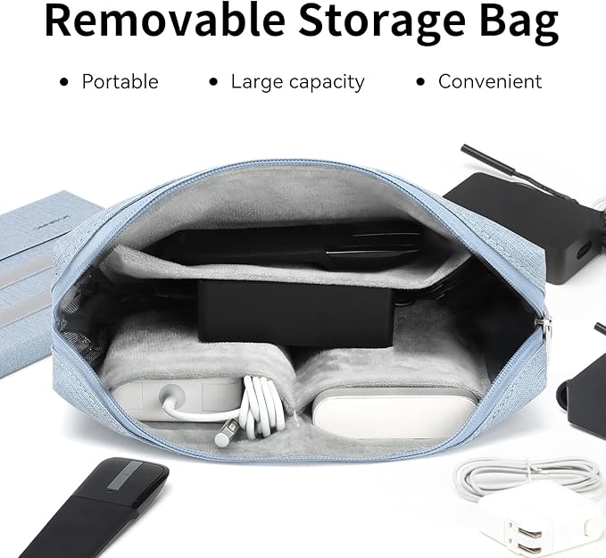 - ELECTRONICS ACCESSORIES STORAGE BAG: This bag is attached to the back of the case by velcro, will not fall off and will not cause affection to the daily Surface using. Inside the bag, there are pockets and enough capacity to hold your Surface accessories such as docking station, mobile hard drive, mouse, charger,etc. The soft inner lining effectively protects your accessories. This bag can solve the problem of carrying several bags when you work anywhere.