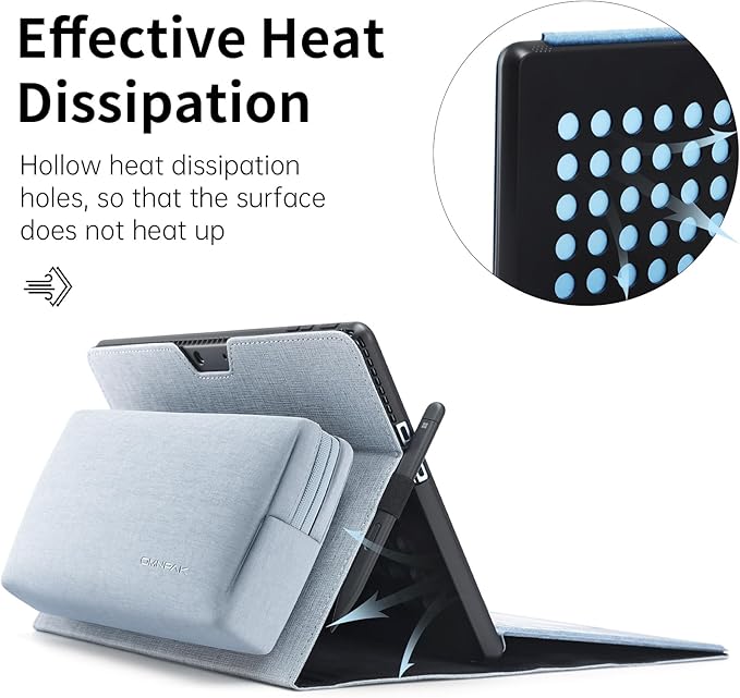 - ANTI-OVERHEATING CASE: Don’t worry about your Surface overheat issues anymore, We designed the part that holds the laptop as a hollow style, which can well ventilate and dissipate heat for your Surface.