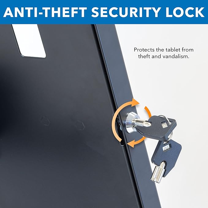 - ANTI-THEFT DESIGN: Perfect iPad kiosk for trade shows, hotels, restaurants, libraries, retail stores & all other POS. The lockable design ensures your iPad is protected from tampering and theft to give you peace of mind and the reassurance that your tablet equipment is safe while being fully accessible to your audiences - including the front-facing camera.
