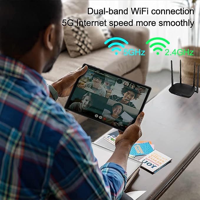 - 【Tablet 5G WIFI & Bluetooth 5.0】Tablet 10 inch Android Tablet has 5G WiFi for faster data transmission and more stable signal. It improves the playback quality of video watching and ensures the user experience. Tablet PC has Bluetooth 5.0, which has a wider coverage and improves the speed of connecting devices. Bluetooth 5.0 combined with 5G WiFi can achieve indoor positioning accuracy of less than 1 meter, making the connection of Bluetooth devices more stable.