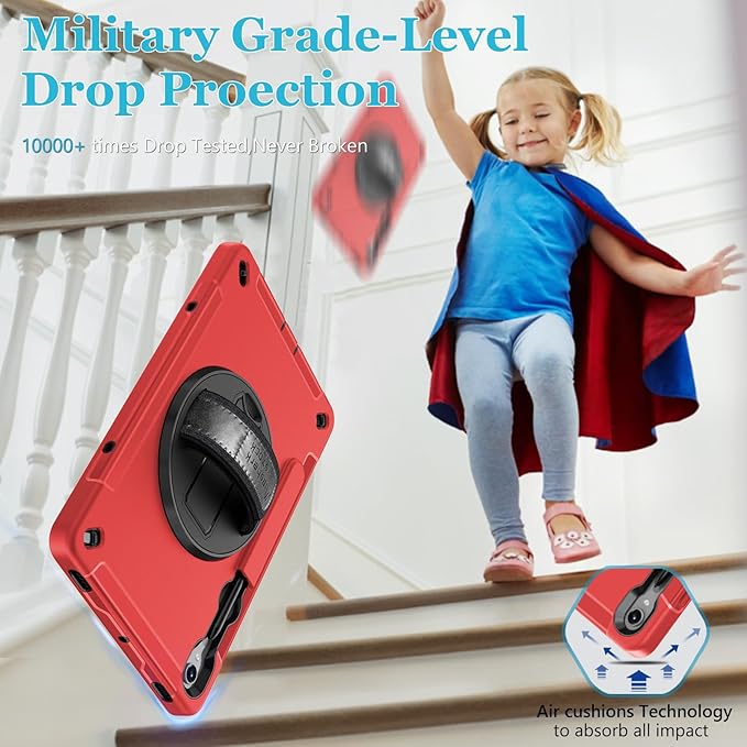 - MATERIAL COMPOSITION: This case for galaxy tab S10 FE&S9 FE 10.9 INCH/S9 11 INCH has a built-in screen protector(It can be removed). The inner cover are Made from Hard PC and outer layer Fexible TPU. Our triple defense system has passed the Military Grade Drop Test [MIL-STD 810G-516.6] and can withstand shocks and drops from up to 15 feet, 10,000 times