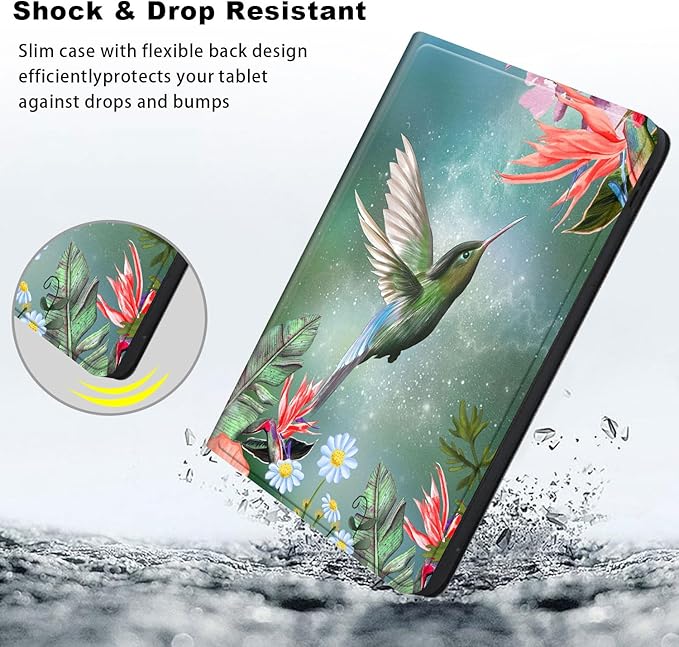Slim Case for Samsung Galaxy Tab S10 FE / S9 FE 5G 10.9" & Tab S9 11", PU Leather Protective Cover, Multi-Angle Stand, Auto Sleep/Wake, Hummingbird
