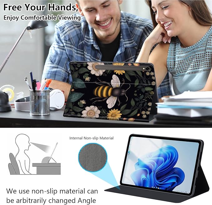 Slim Case for Samsung Galaxy Tab S10 FE / S9 FE 5G 10.9" & Tab S9 11", PU Leather Protective Cover, Multi-Angle Stand, Auto Sleep/Wake, Bee