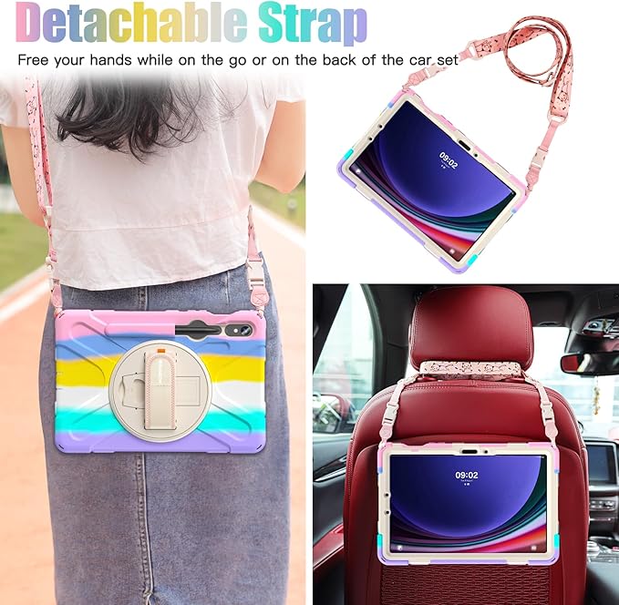 - Adjustable Shoulder Strap: The Shockproof Samsung Tab S10 Lite/ S10 FE/ S9 FE/ S9/ S8/ S7 Tablet Case comes with a adjustable detachable shoulder strap, so that you can carry your tablet on neck or shoulder like a bag, or sling it on car head rest. It's ideal for carrying on travel, at work, in school or outdoors