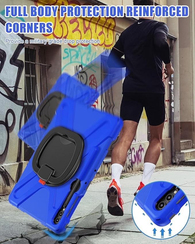 BRAECN Case for Galaxy Tab S10+/S9 FE+/S9+/S8+/S7 FE/S7+ 12.4 Inch SM-X820/X810/X800, Rugged Silicone Cover with Screen Protector, Kickstand, Shoulder Strap, S Pen Holder for Galaxy Tab S9 Plus, Blue