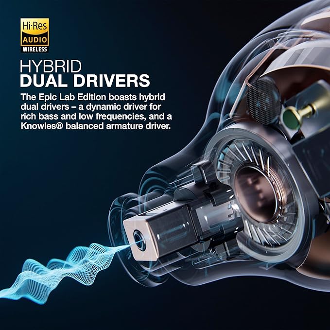 - 🔊 HYBRID DUAL DRIVERS: The Epic Lab Edition boasts hybrid dual drivers – a dynamic driver for rich bass and low frequencies, and a Knowles balanced armature driver for exquisite high frequencies. This fusion of drivers results in unparalleled, well-balanced, and crystal-clear sound quality.