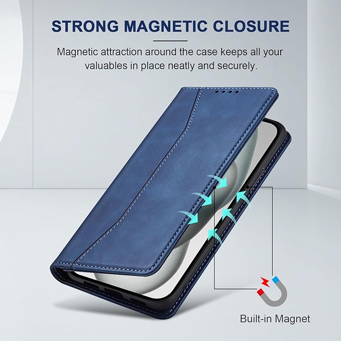 Jasonyu Flip Wallet Case for iPhone 15 Plus,Leather Magnetic Folio Cover with Card Holder,Kickstand - TPU Shockproof Durable Protective Phone Case,Blue
