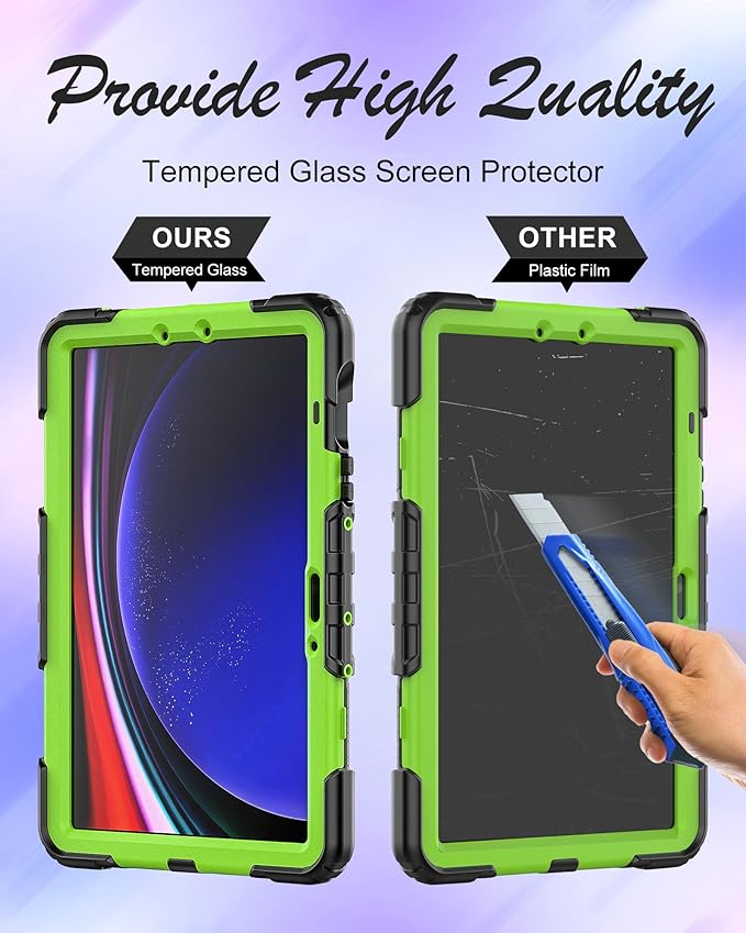 - Tempered Glass Screen Protector: The Shockproof S10 Lite/S10 FE/S9 FE /S9 Tablet Case for Samsung Galaxy come with a 9H hardness tempered glass screen protector to provide more comprehensive protection for the device. The HD screen protector is scratch-resistant, fingerprint-proof, sensitive to touch, easy to install and durable, and can be used with stylus S-Pen. NOTICE: S Pen is NOT included