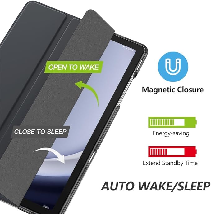 - Auto Wake/Sleep: Built-in magnetic strip, automatically wakes or puts your tablet to sleep when the lid is opened and closed. this Tab A9 Plus Case Protects and extends battery life